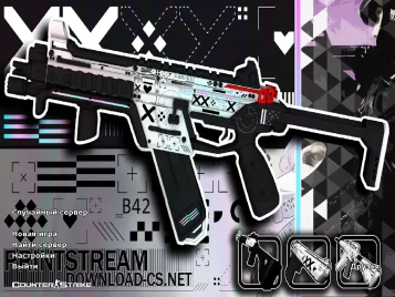Если ищете сборку, которая превращает привычный Counter-Strike 1.6 в нечто более красивое и свежее - CS 1.6 Progressive именно для вас. С первых же секунд видно, что это не просто старая «контра» с незначительными правками, а сборка, где поменяли модели оружия на скины из CS:GO, прицельные текстуры стали четче, нож-бабочка привлекает внимание, меню и интерфейс получили темную тему с фиолетовыми акцентами. Фон главного меню - контр-террорист в стиле аниме-арты - добавляет настроения, а темные меню с новым шрифтом и радар чёрного цвета создают атмосферу более «взрослой» игры.
